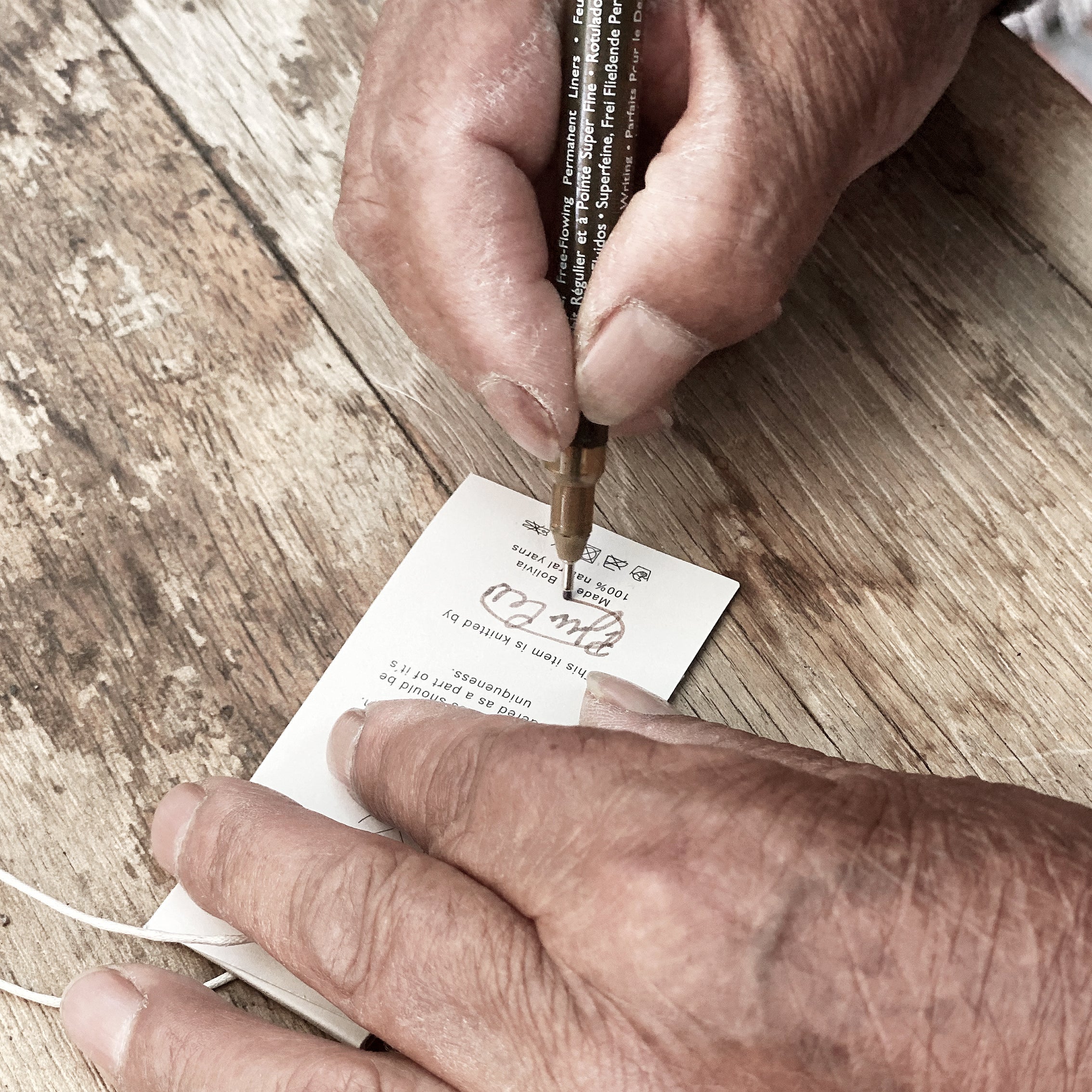 Utvalget av alpakkaull og de tilgjengelige fargene varierer. Hvilke produkter vi kan tilby, avhenger derfor av hva vi har på lager. Ullen bearbeides, tørkes og spinnes til garn i spinnerier. Garnene leveres så til kontoret i La Paz. Kontoret drives av GAI+LISVAs samarbeidspartner, Alpaca Export. Kvinnene besøker kontoret ukentlig for å få informasjon om hvilke bestillinger som skal produseres. Deretter tar de garnet med tilbake til strikkegruppene sine, sammen med leveringsdatoen for ferdige produkter. Når kvinnene er ferdige med produksjonen, leverer de arbeidet sitt for kvalitetskontroll. Kvalitetskontrollavdelingen inspiserer hvert produkt for feil, og står deretter for siste finish som vask, stryking og merking med vaskeanvisninger. Kvinnene skriver navnene sine på merkelappene slik at det er mulig å se hvem som har strikket hvert enkelt plagg. Vi har nylig gitt økonomisk støtte til de bolivianske kvinnene for å finansiere et nytt strikkekurs som hjelper dem å videreutvikle ferdighetene sine. Vi gleder oss til å fortelle deg mer om dette.